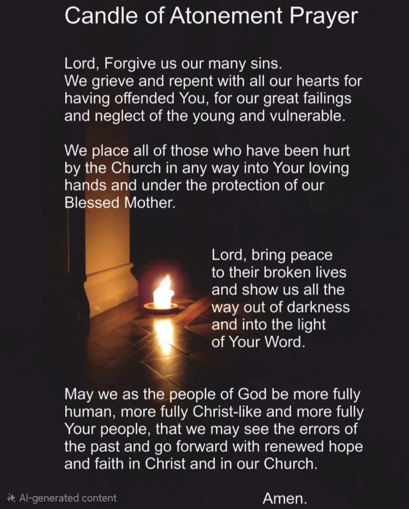 We grieve and repent with all our hearts for having offended you, for our great failings and neglect of the young and vulnerable.